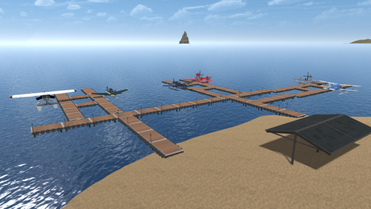 Whether you want to do some slow flying around the islands with a PZL M-15 Belphégor, or do some sightseeing around the shipwrecks with an MD-500, this world will be able to satisfy your needs. The airfield is divided onto three different areas. Two spawn rows on the same airfield at the top of the hill, plus a third one located at a pier. If you add up all the aircraft in the world, then you would find 23 individual aircraft to fly in!